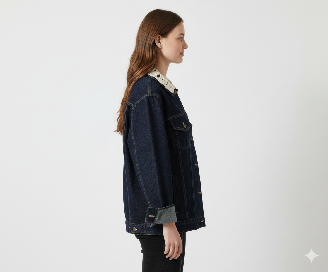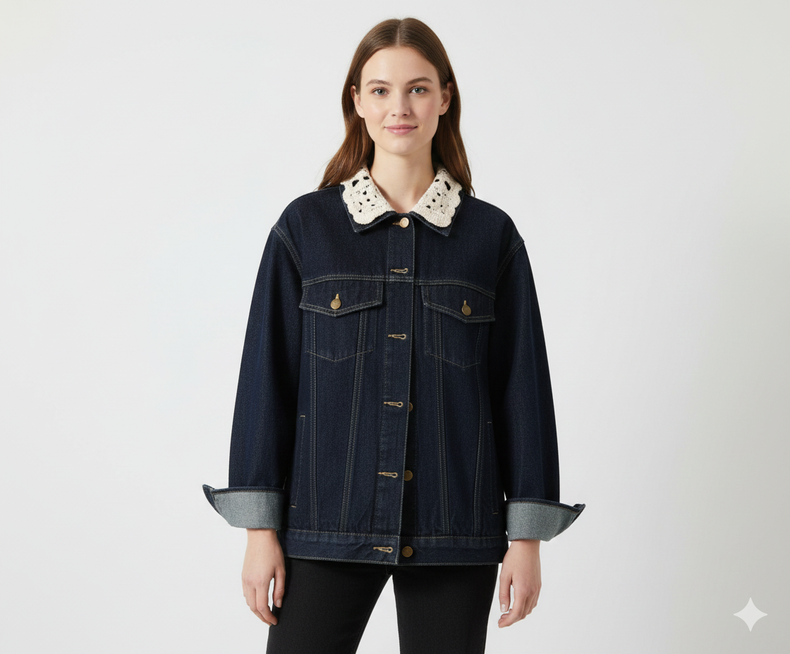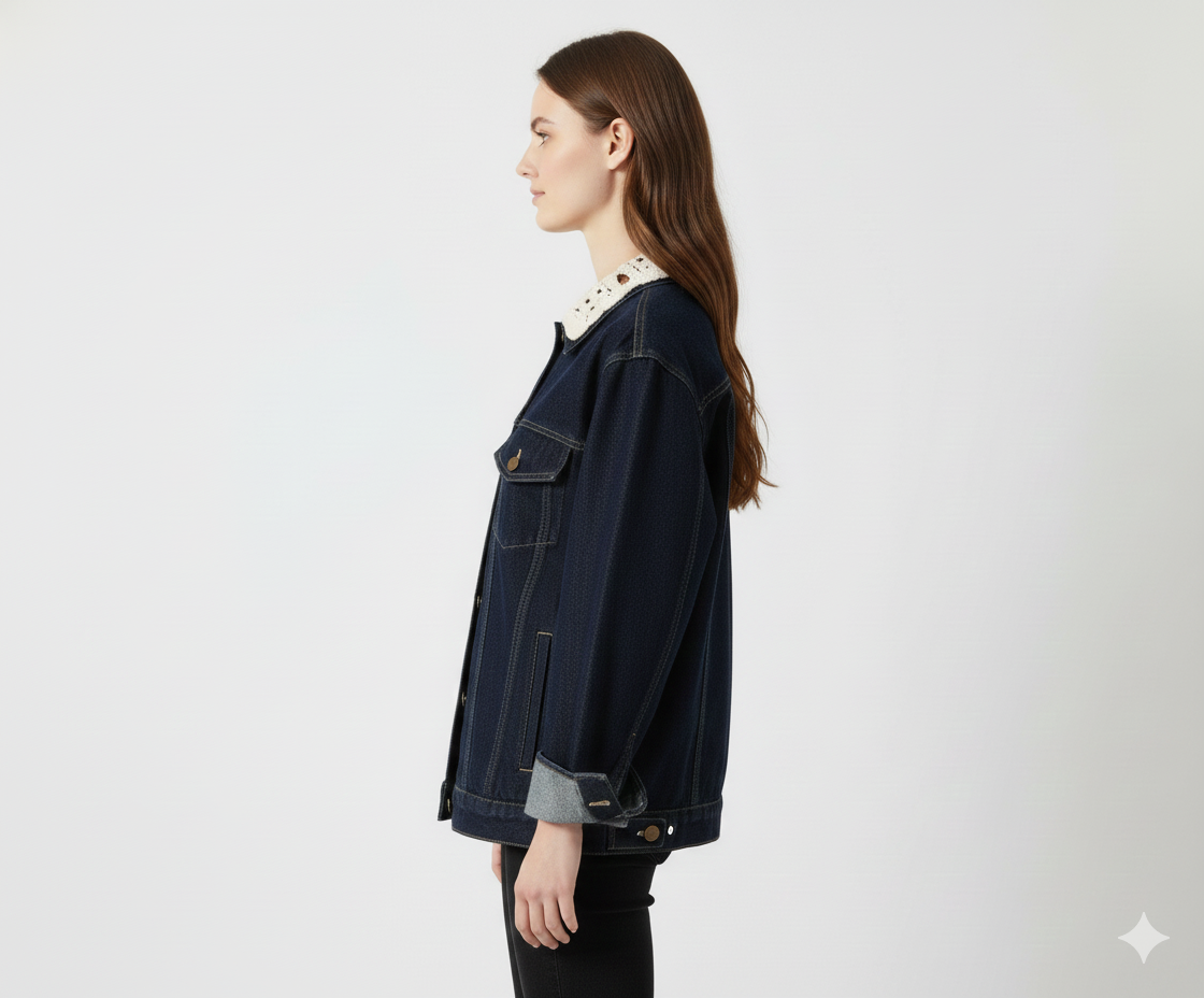 Kvinders Denimjakke Med Kontrast Koprint