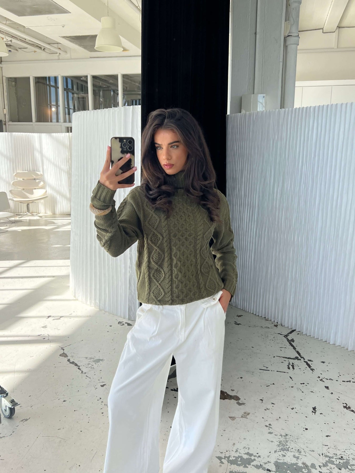 Kvinders Mørkegrøn Ribstrik Turtleneck Sweater